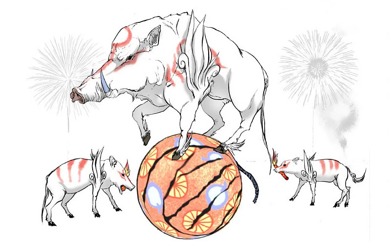 I would expect there to be a flames theme to the fire starters, but I was thinking that it would evolve into something more along the lines of a quadrupedal boar. Probably along the lines of Bakugami (from Ookami) http://images3.wikia.nocookie.net/okami/images/a/a0/Bakugami.jpg
